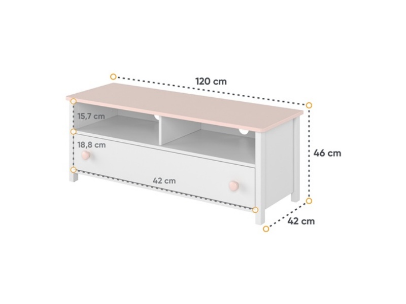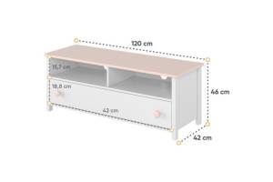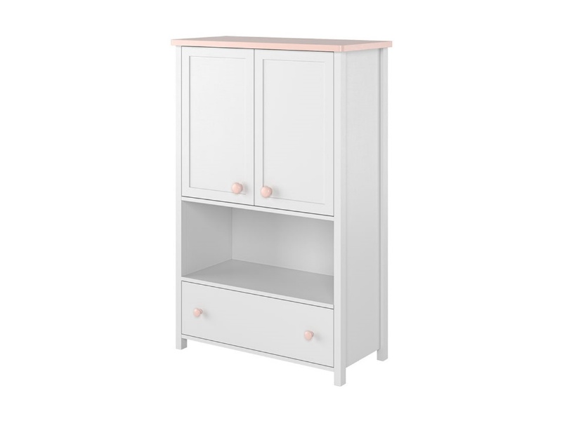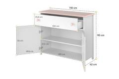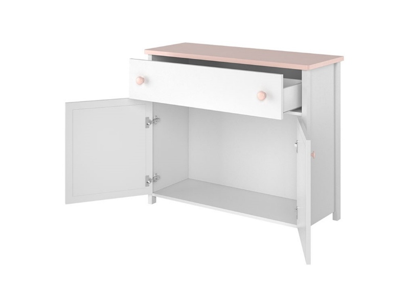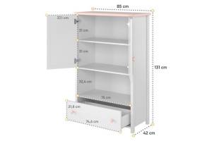 - comoda inalta are 1 sertar si 2 usi in interiorul carora se afla 2 polite