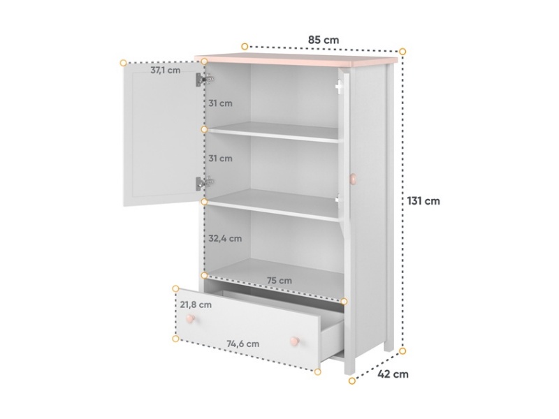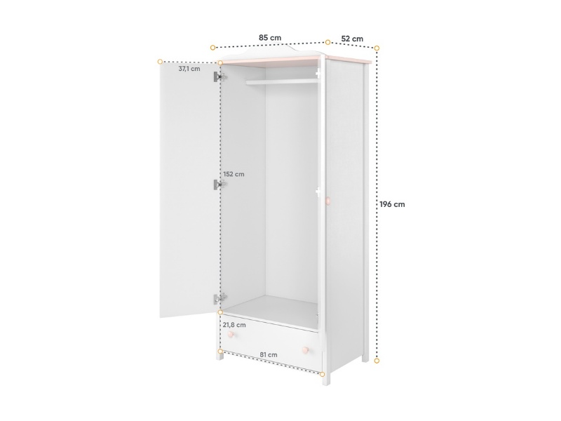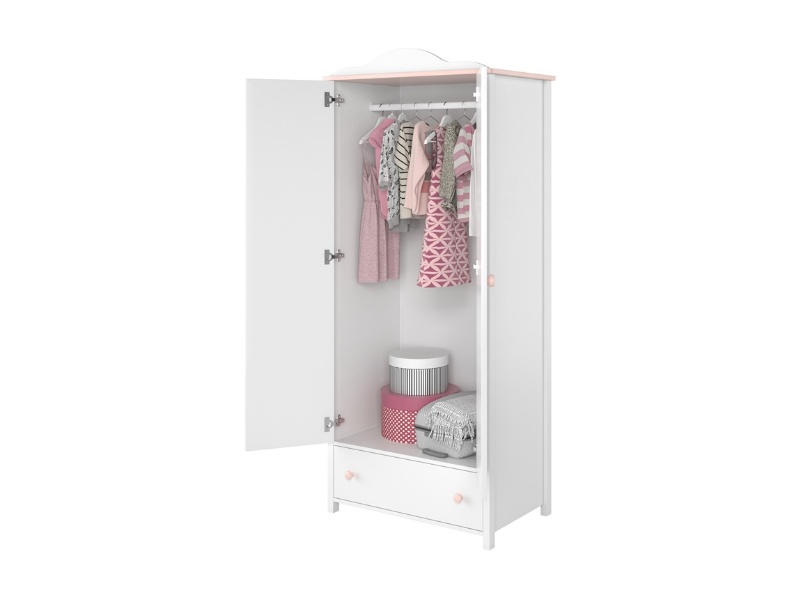 - dulapul are 1 sertar si 2 usi in interiorul carora se afla 1 bara pentru umerase