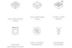 - este acoperita cu o tesatura placuta la atingere, care permite aerului sa circule in interiorul ei, prevenind astfel dezvoltarea mucegaiului si a ciupercilor.