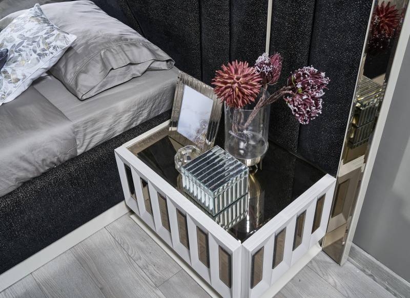 Materiale folosite la productie: MDF (partile principale), PAL, oglinda, metal,textil