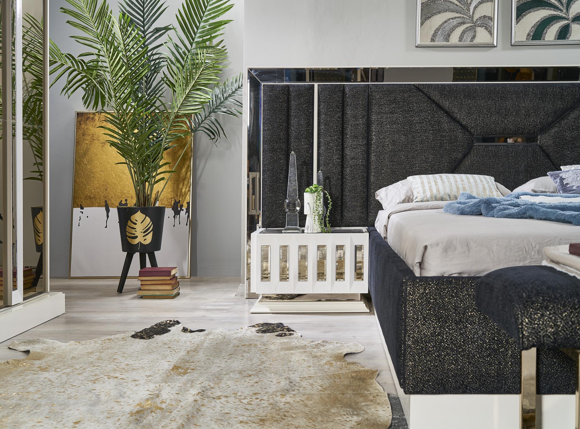 Patul este prevazut cu spatiu pentru depozitare tip lada si cu somiera (sistem de rabatare cu pistoane pe gaz)
