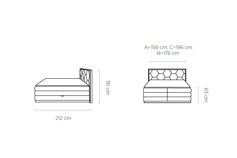 Zona pentru dormit: 140 X 200cm / 160 X 200cm / 180 X 200cm