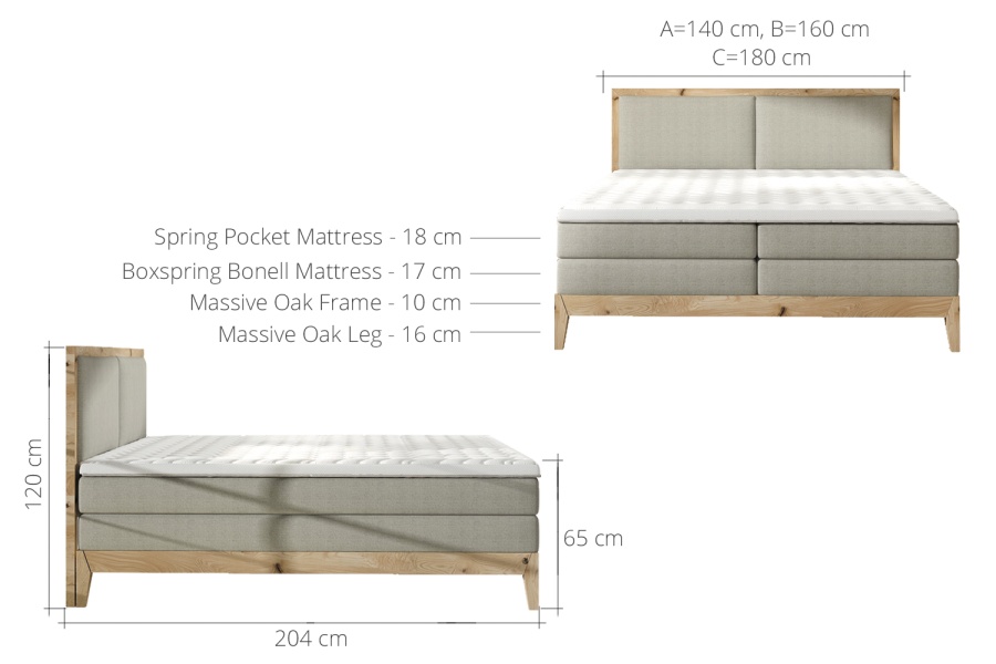 Zona pentru dormit: 140 X 200cm / 160 X 200cm / 180 X 200cm