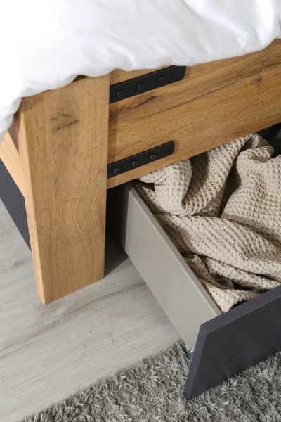 Sertarele patului se pot folosi cu usurinta datorita rolelor de culisare.