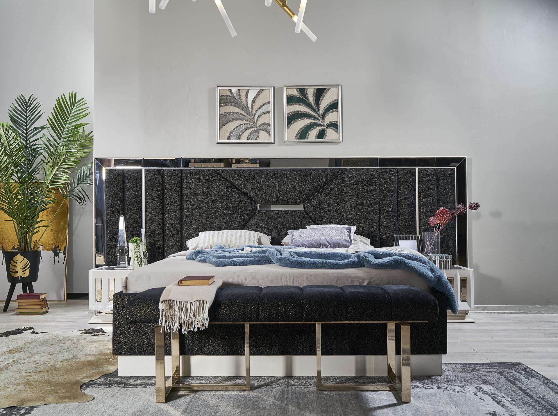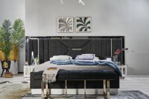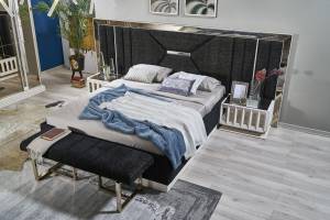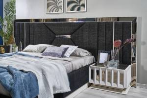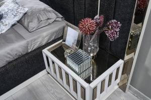 Setul contine un pat de (180x200cm) dimensiunea saltelei si 2 noptiere.