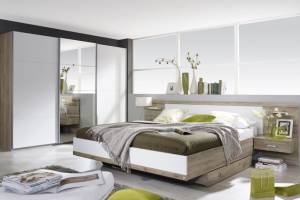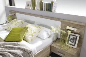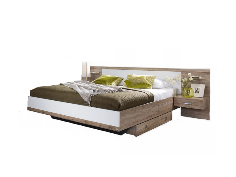 GANDRA Cadru pat + noptiere (160x200cm) sanremo/ alb alpin
