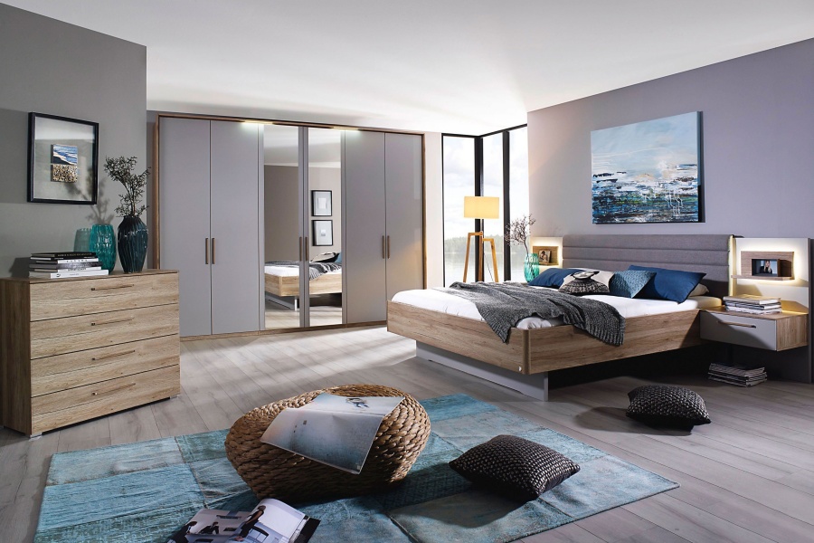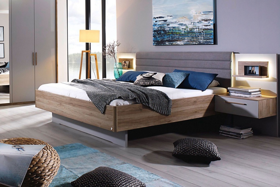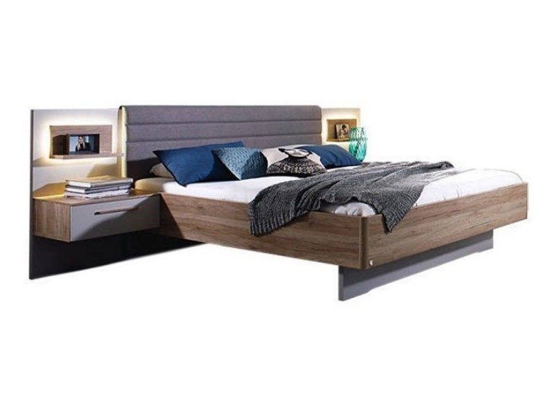 HELENE PLUS Cadru pat cu noptiere + led (200x200cm) sanremo/ silk grey