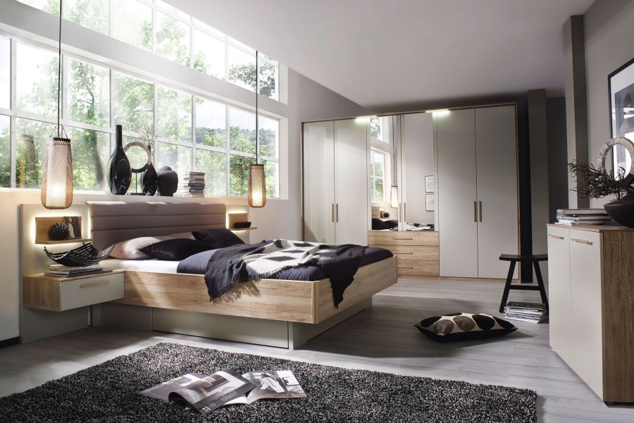 HELENE PLUS Cadru pat cu noptiere + led + sertare depozitare (180x200cm) sanremo/ silk grey