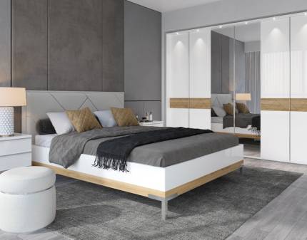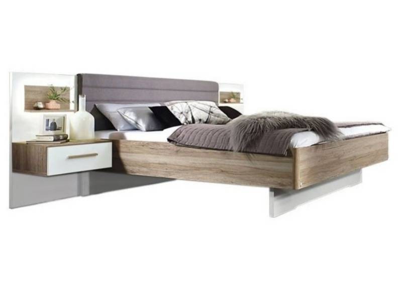 HELENE PLUS Cadru pat cu noptiere si led (180x200cm) sanremo/ alb alpin