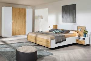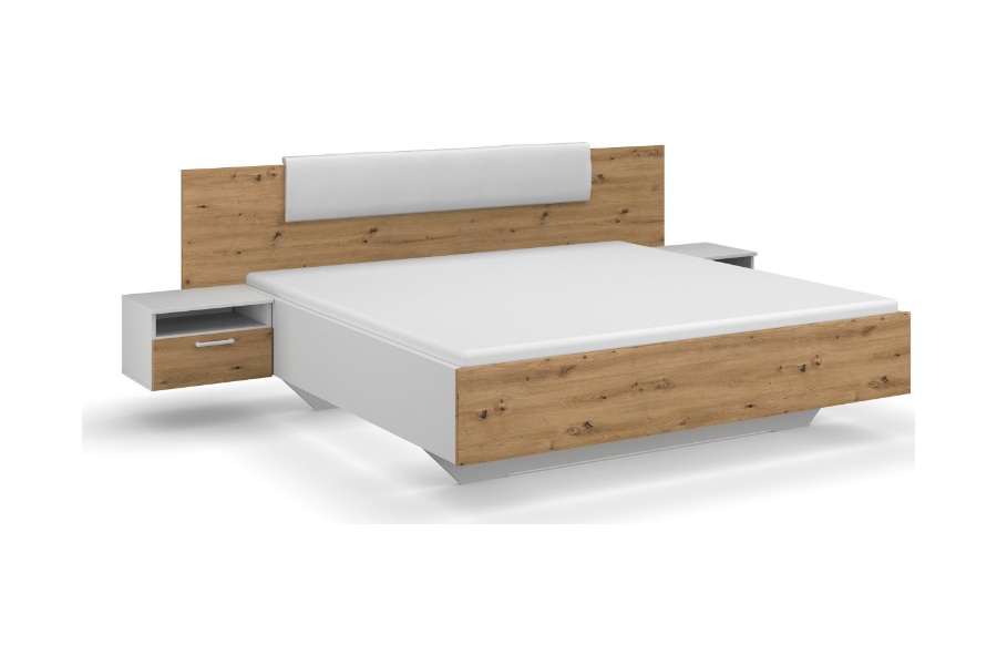 Pat cu noptiere MIRO (180x200cm) alb alpin/ stejar artisan