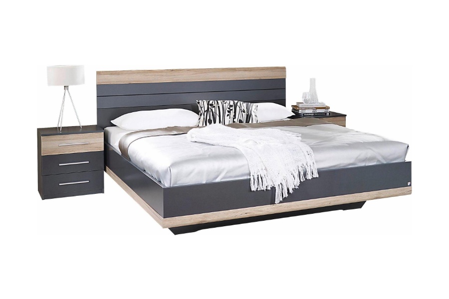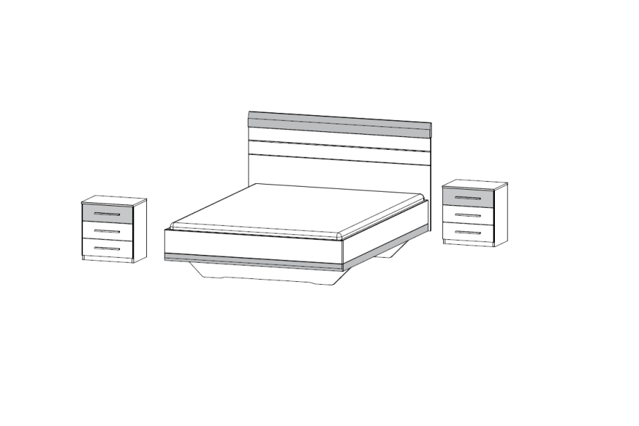 TARRAGONA Cadru pat + 2 noptiere (180x200cm) gri metalic + sanremo