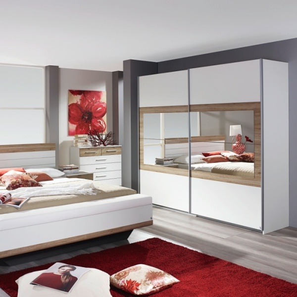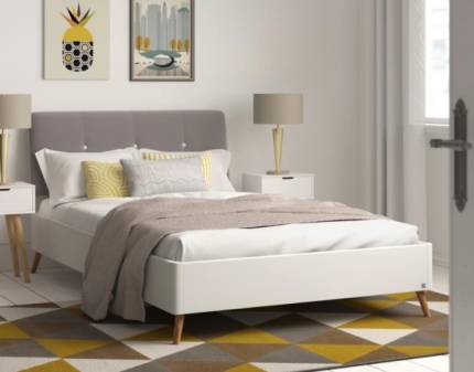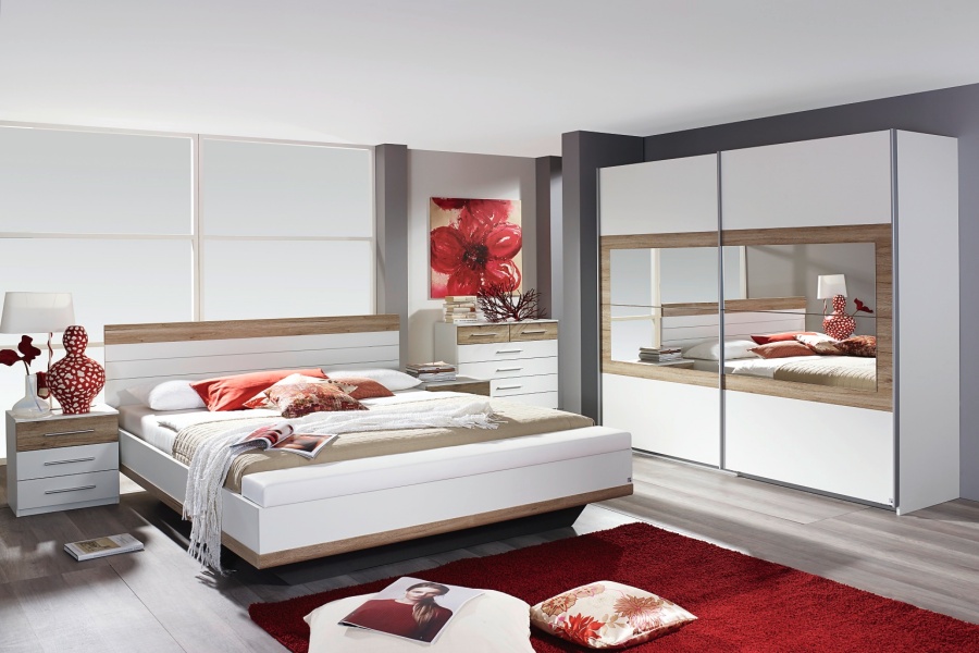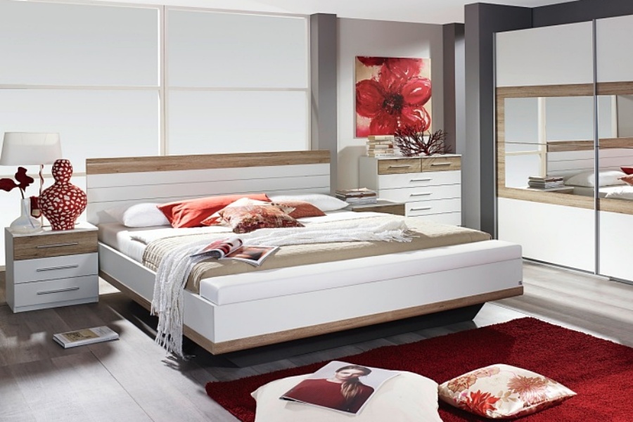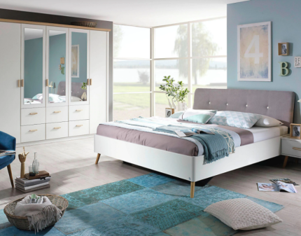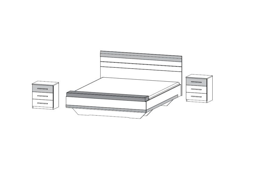 TARRAGONA Cadru pat + 2 noptiere + bancuta (180x200cm) alb alpin + sanremo