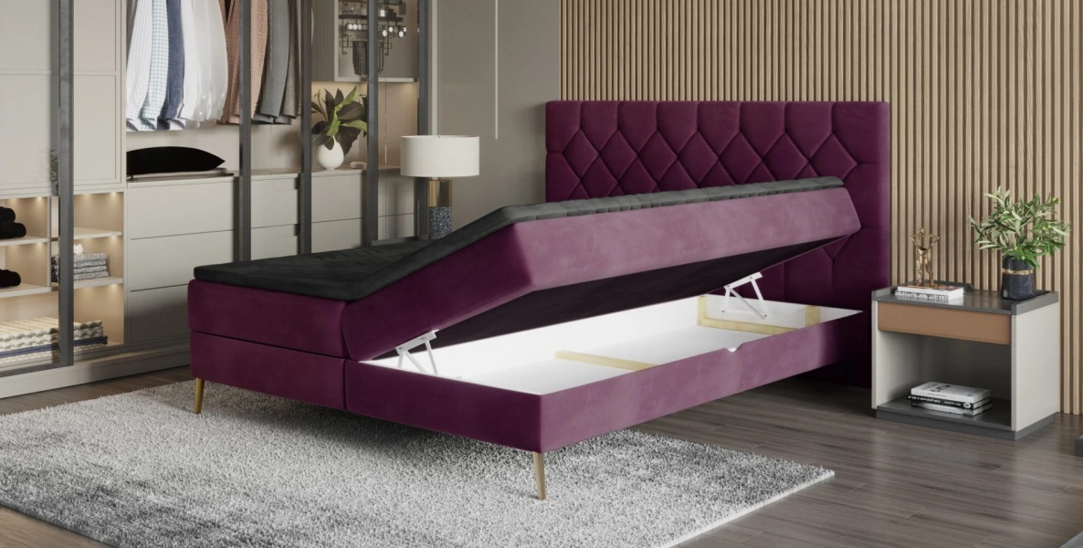 Patul are inclus spatiu pentru depozitare sub forma de lada.