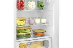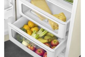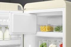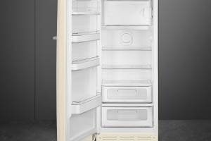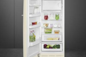 Frigider retro Smeg FAB28LCR5, cu finisaj lucios si design rotunjit. Echipat cu maner extern fixat, sistem de racire Multiflow si tratament antibacterian, acest frigider ofera un mix perfect de stil retro si performanta moderna pentru o bucatarie sofisticata.