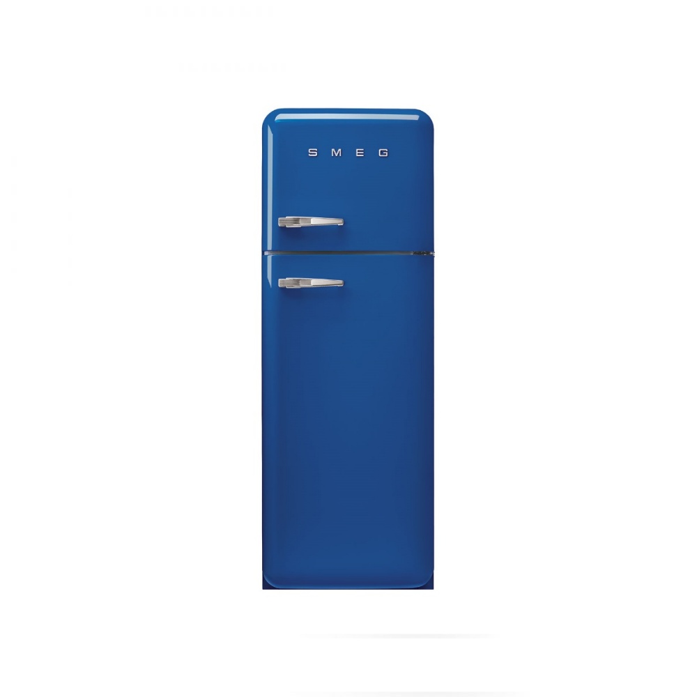 Frigider retro Smeg FAB30RBE5, cu finisaj lucios si design rotunjit. Echipat cu maner extern fixat, iluminare LED, alarma acustica si vizuala pentru usa deschisa si garnitura antibacteriana, acest frigider imbina perfect stilul retro cu functii moderne, oferind eleganta si eficienta in bucataria ta.