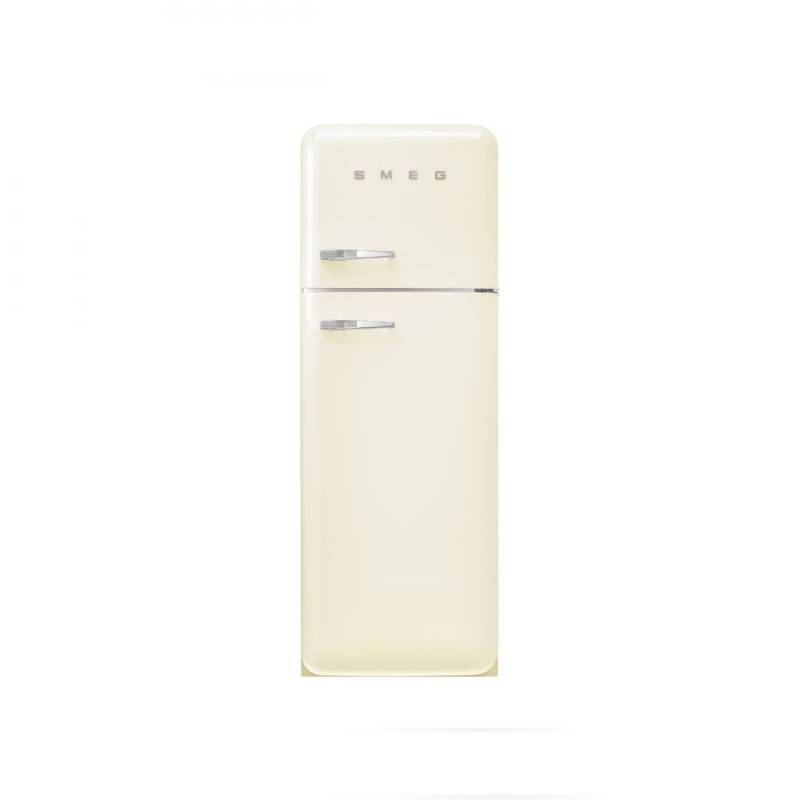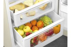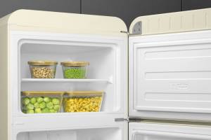 Frigider retro Smeg FAB30RCR5, cu finisaj lucios si design rotunjit. Echipat cu maner extern fixat, iluminare LED, alarma acustica si vizuala pentru usa deschisa si garnitura antibacteriana, acest frigider imbina perfect stilul retro cu functii moderne, oferind eleganta si eficienta in bucataria ta.