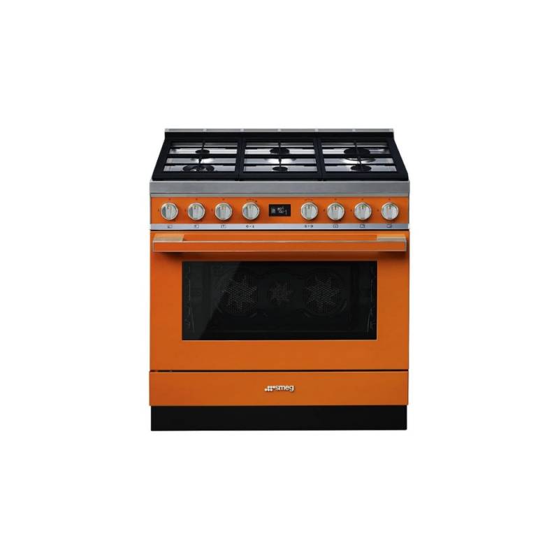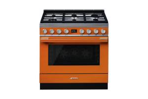 Masina de gatit Smeg Portofino CPF9GMOR, 90 cm, portocalie, 6 arzatoare, 115 l cuptor