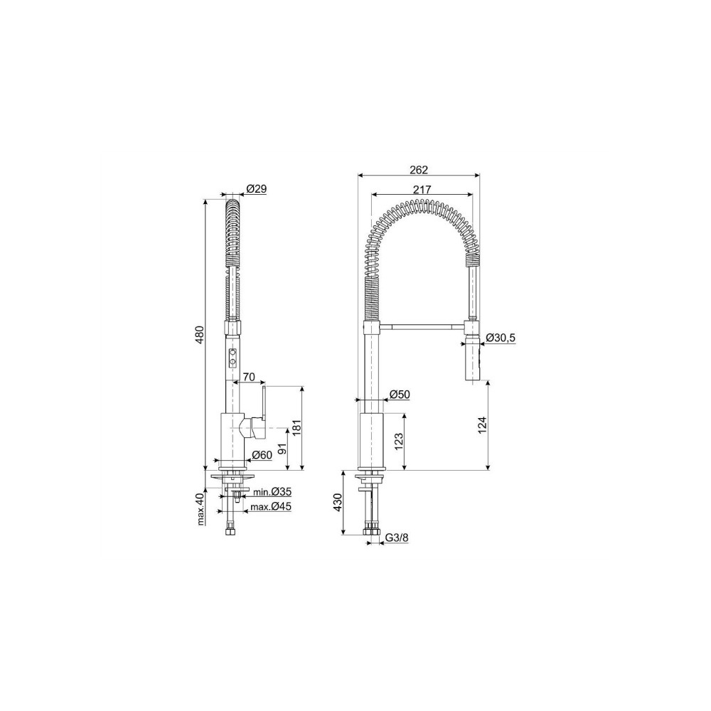Baterie de bucatarie Smeg MIDR55CR, crom, extractibil
