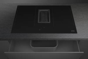 Plita incorporabila cu inductie si hota integrata Smeg HOBD482D, 80 cm latime, negru