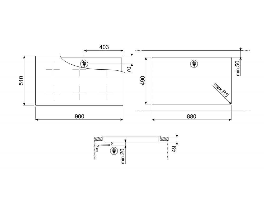 Dreapta spate: Induction - Multizone, 18.0x23.0 cm, 2100 W (Booster 3600 W)