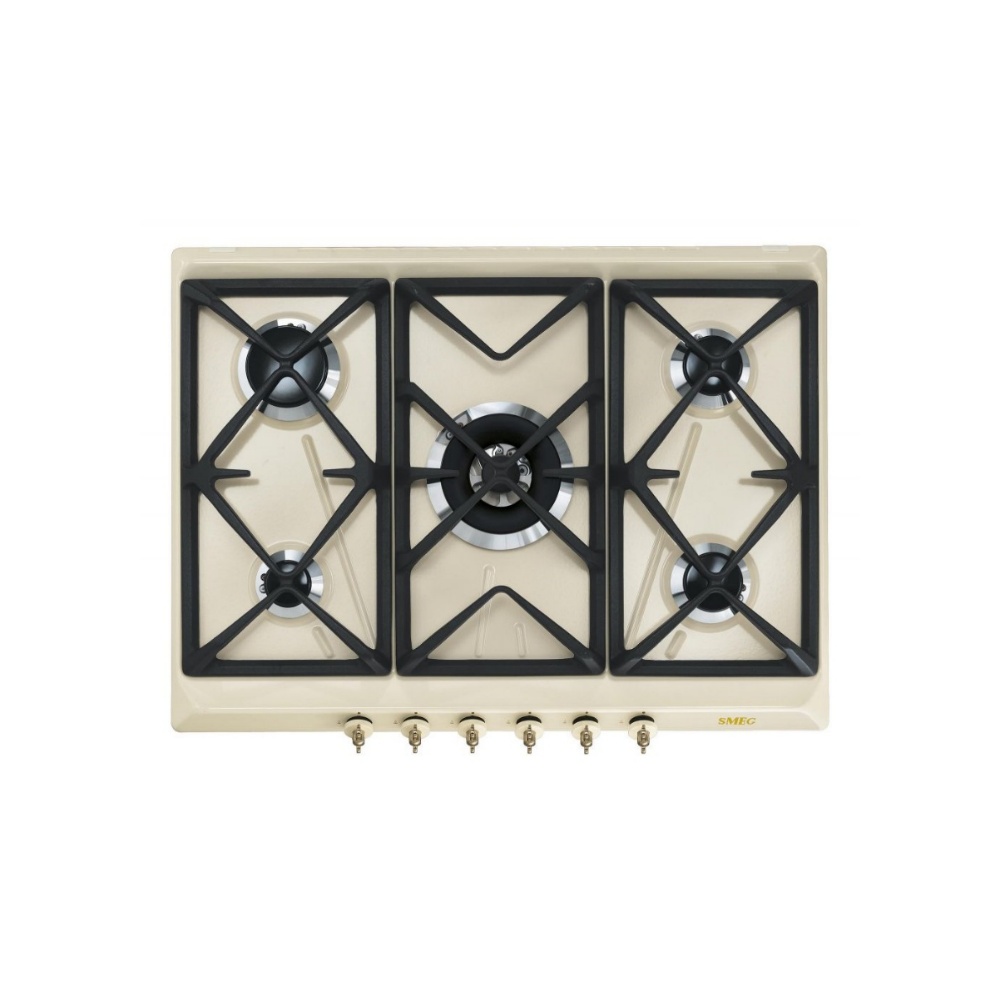 Plita incorporabila pe gaz Smeg Colonial SRV876POGH, 70 cm, crem, retro