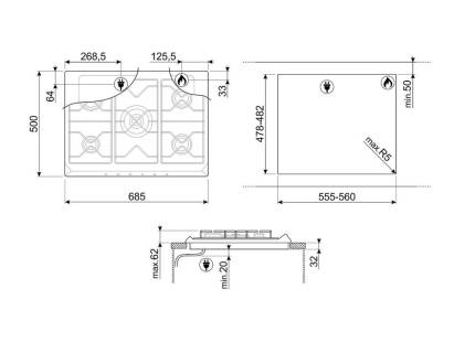 Plita incorporabila pe gaz SmegSelezione Aesthetic P260XGH, 60 cm, inox