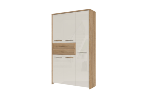Dulap hol cu 5 usi si 2 sertare GALA 114x192x36cm bej lucios/ nuc Pacific
