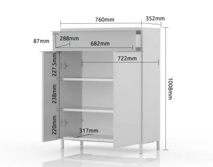 Pantofar cu 2 usi si 1sertar ONYX 76x101x35cm antracit lucios/ nuc Pacific