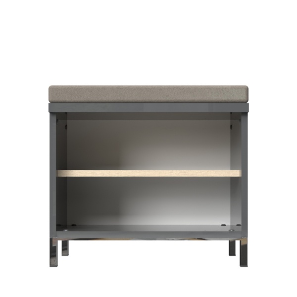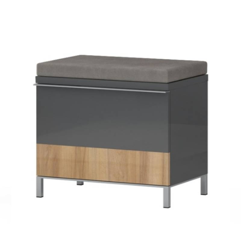 Banca cu 1 usa rabatabila ONYX 59x51x35cm antracit lucios/ nuc Pacific - tapiterie gri