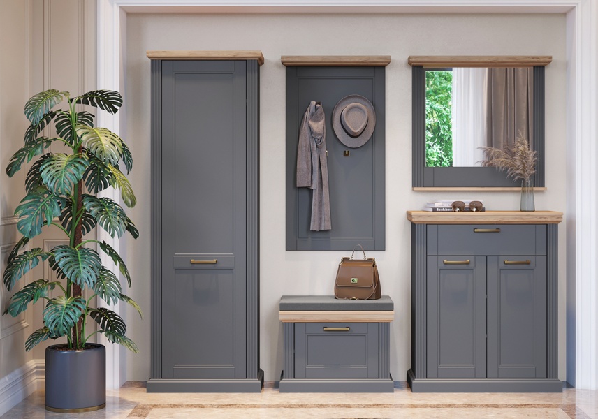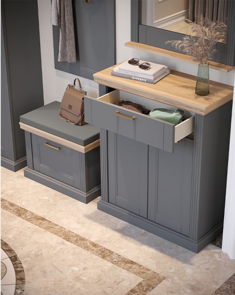 Pantofar cu 2 usi si 1 sertar TARA GREY 86x102x38cm grafit mat/ Pacific walnut