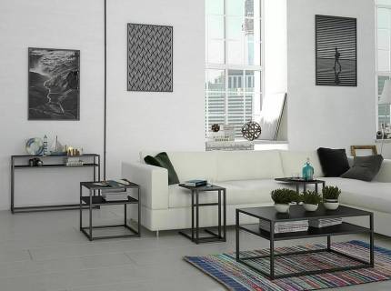 Consola ROSSI C din PAL cu efect de marmura neagra 100x30xH80cm, metal negru