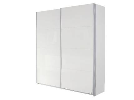 Dulap cu usi glisante MINOSA PLUS cu polite 136x197x48cm alb alpin/ alb lucios - oglinda, maner aluminiu