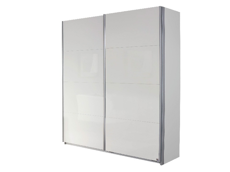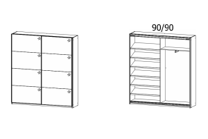 Dulap cu usi glisante MINOSA PLUS cu polite 181x197x48cm alb alpin/ alb lucios, maner aluminiu