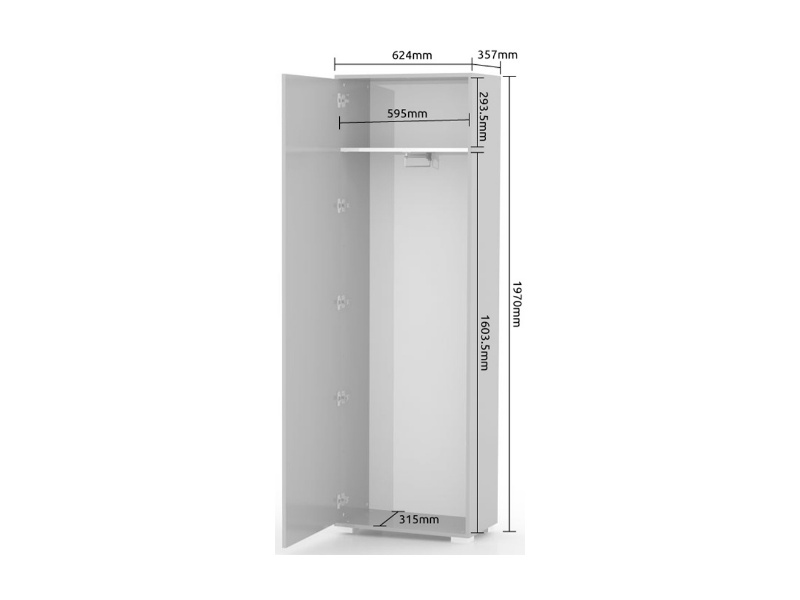 Dulap hol cu 1 usa STELA 63x197x36cm stejar tabac/ alb lucios