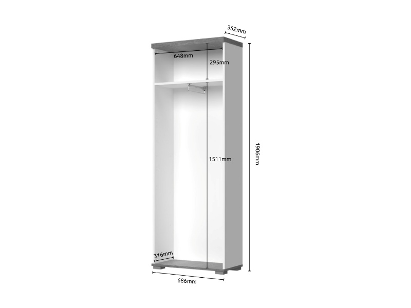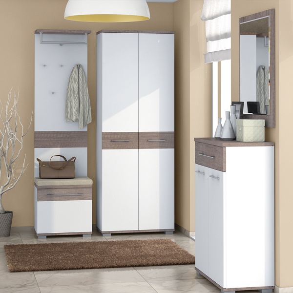 Dulap hol cu 2 usi AZUR 68x189x35cm alb mat/ stejar Nebraska