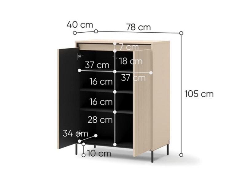 - pantofarul are 2 usi iar interiorul este impartit in 2 parti vericate si are in total 6 polite incluse