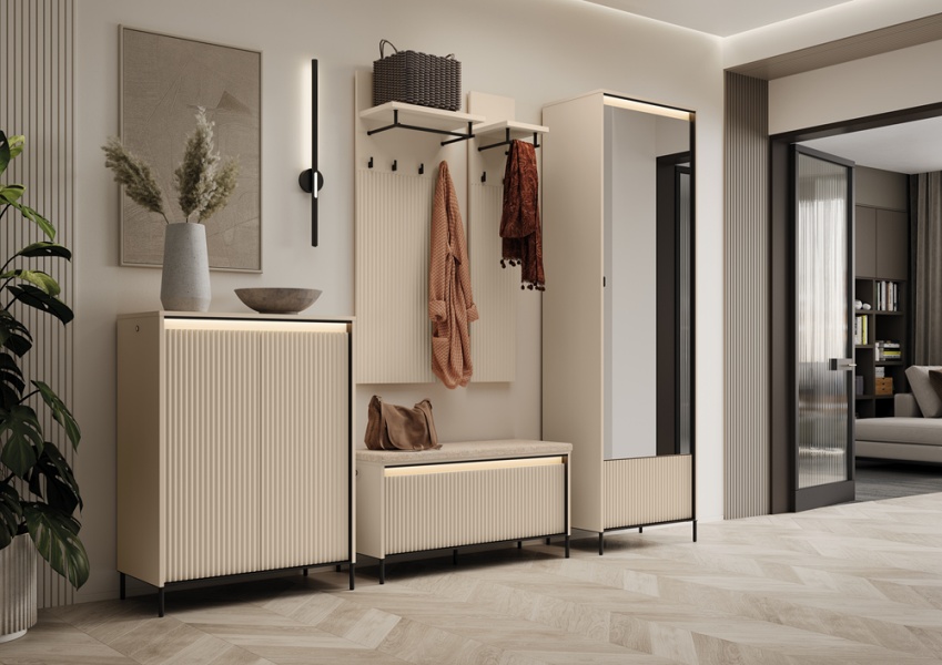 - sistem iluminare LED la dulap, banca si pantofar