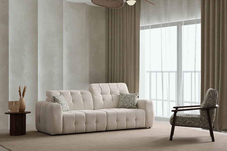 S ENZO canapea fixa ENZO 101 (material textil crem)