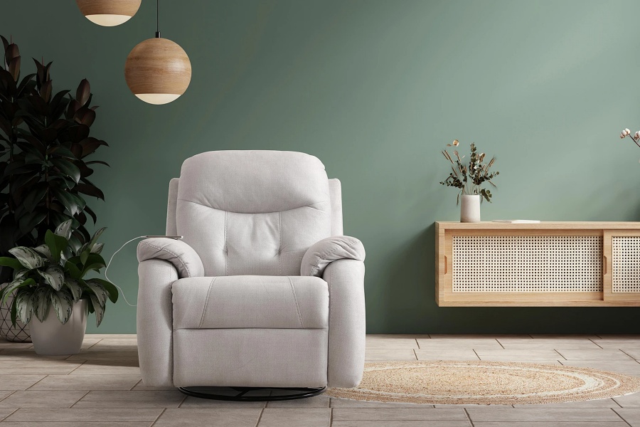 Fotoliu rotativ cu recliner electric MAXIS cu adaptor USB, 100x80cm personalizabil