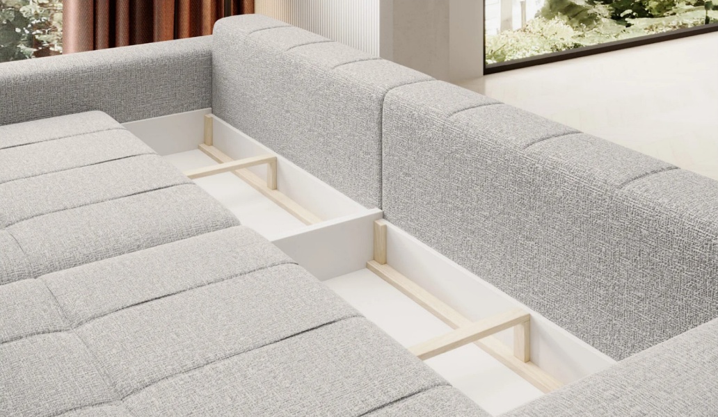 Big sofa extensibila MOTTA cu lada pentru depozitare, extensie individuala, personalizabila 278x130cm