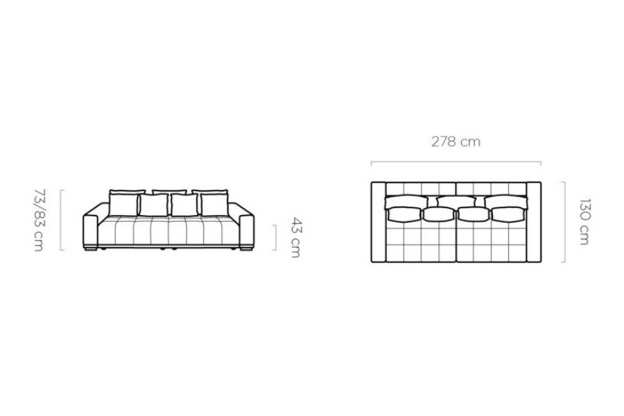 Canapea 2 locuri CANDY fixa, personalizabila 184x94cm
