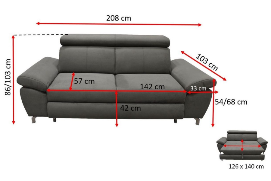 Dimensiunile spatiului de dormit sunt: 126 x 140 cm