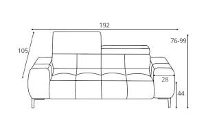 Canapea 2 locuri fixa PLAZA cu tetiere reglabile, personalizabila 192x105cm