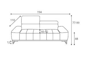 Canapea cu reglaj electric 2 locuri PALLADIO cu tetiere reglabile, personalizabila 194x110cm