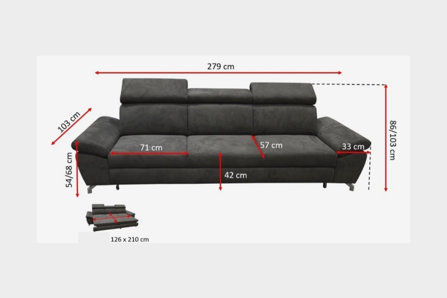 Dimensiunile spatiului de dormit sunt: 126 x 210 cm