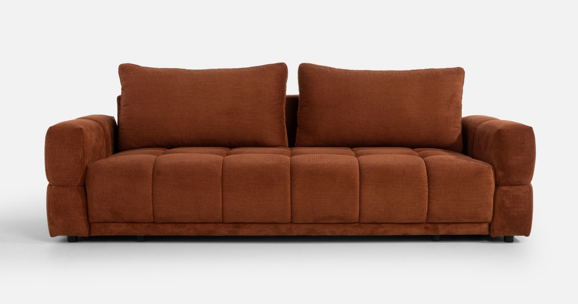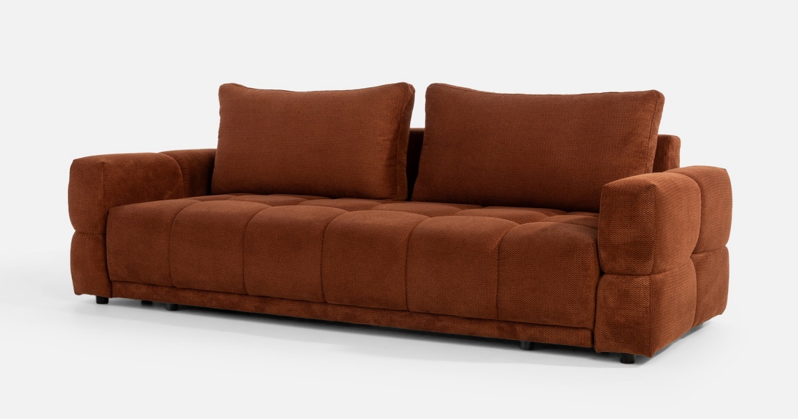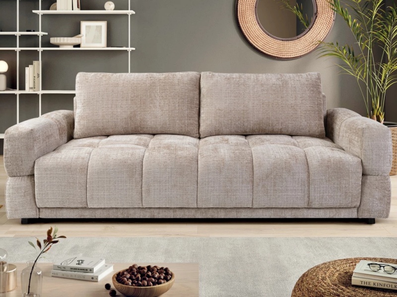 Canapea extensibilă modernă, cu 2 perne mari incluse, extensie tip doppel liege (DL) și spațiu de depozitare tip ladă. Modelul DANTE, dotat cu arcuri sinusoidale, combină funcționalitatea cu un design contemporan, ideal pentru un spațiu confortabil.