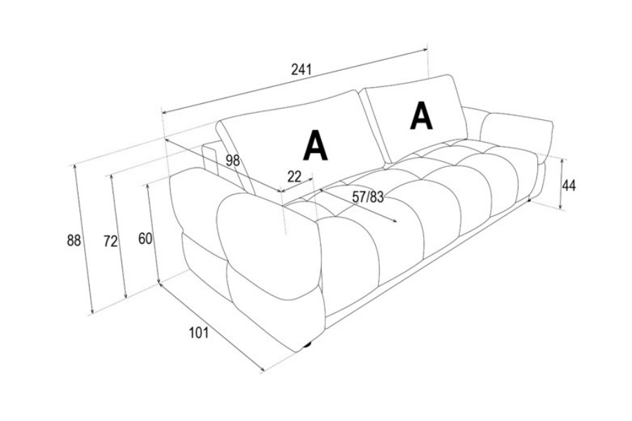 Canapea extensibila ASTI cu spatar reglabil, personalizabila 261x116cm