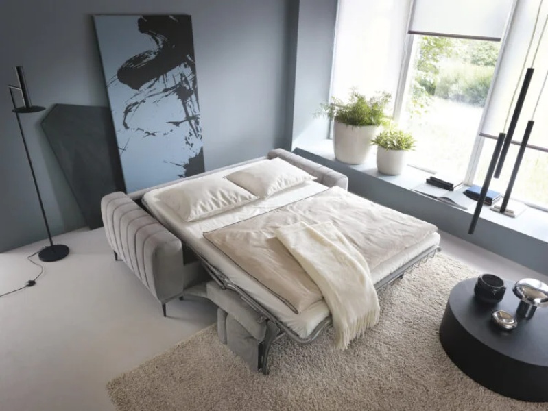 Canapea extensibilă modernă, cu extensie pentru dormit, tetiere reglabile și saltea inclusă. Modelul GANDI(140cm), îmbină confortul cu un design elegant, perfect pentru un spațiu practic și stilat.