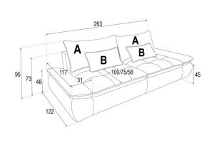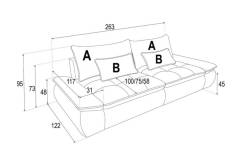 Canapea extensibila NUBE cu lada pentru depozitare, extensie individuala, personalizabila 263x122cm