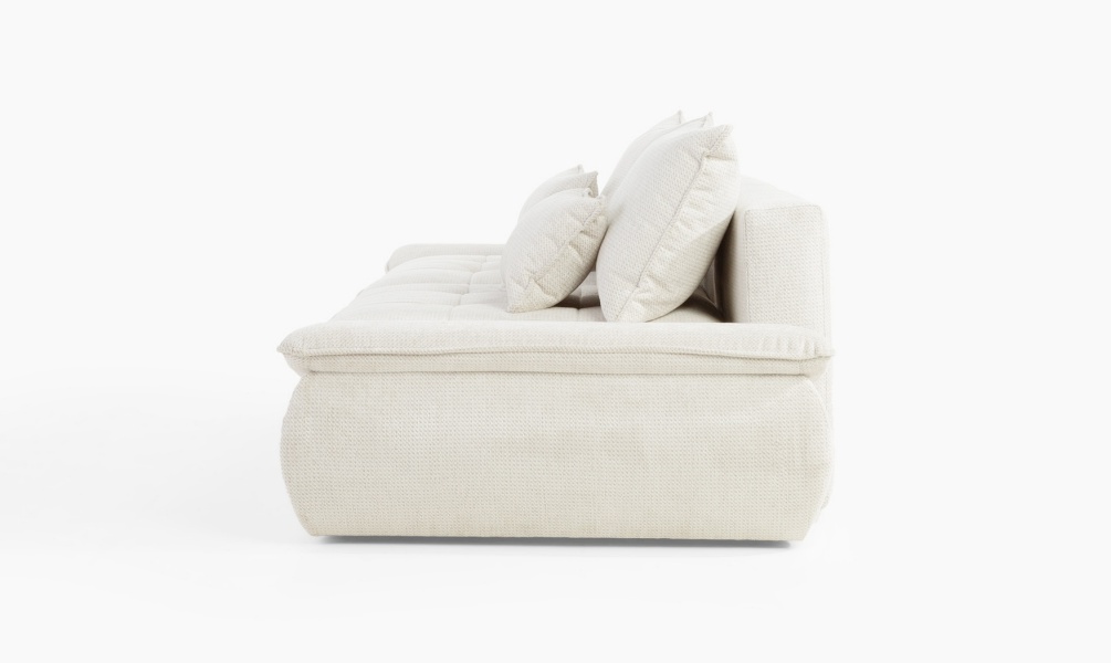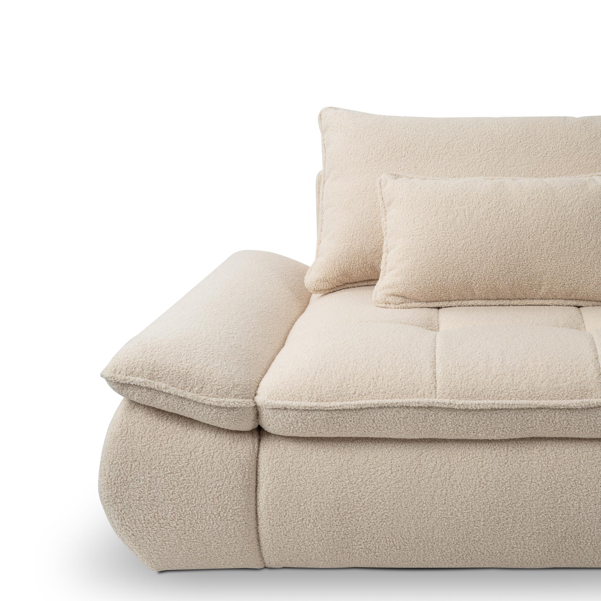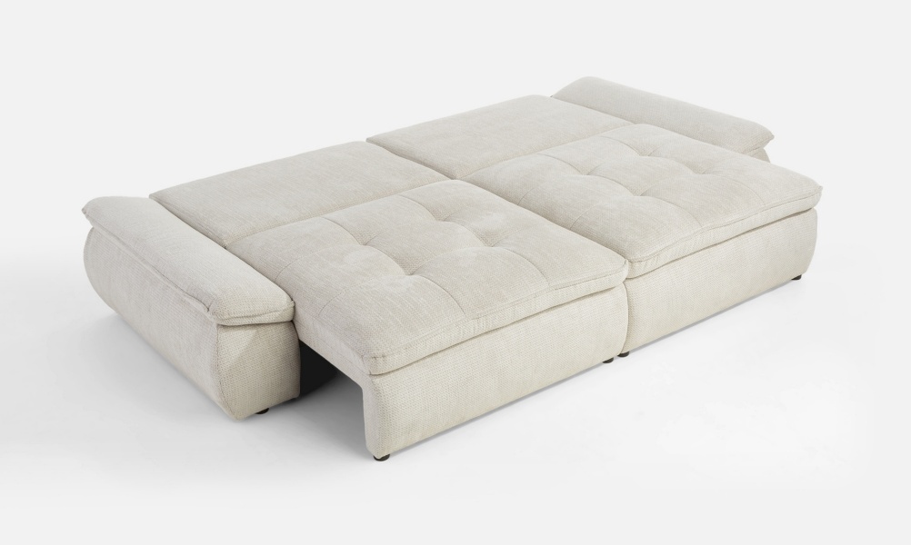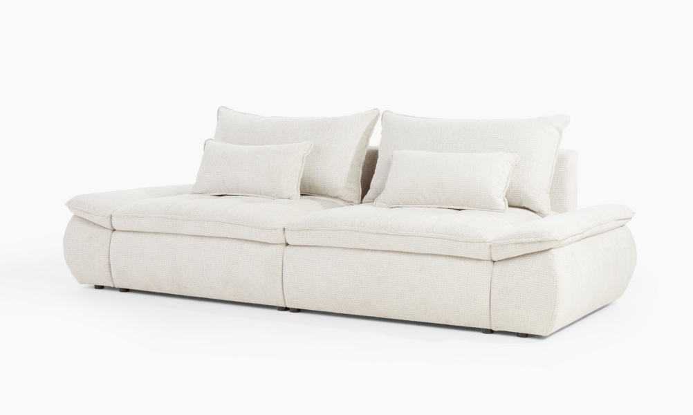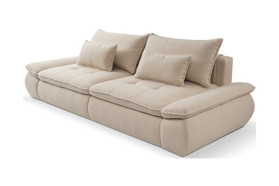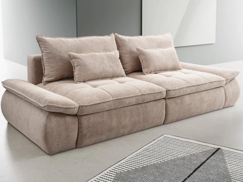 Canapea extensibilă modernă, cu 2 perne mari și 2 perne mici incluse și extensie tip doppel liege. Modelul NUBE oferă confort sporit și un design funcțional, perfect pentru un spațiu relaxant și practic.